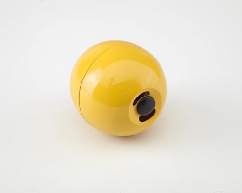 Väri keltainen. Hauskaa touhua linnuille. Täytä jyvillä/pelleteillä tms. ja anna kanoille. Kanat voivat töniä, nokkia ja potkia palloa jolloin jyväset tippuvat pallon aukoista.