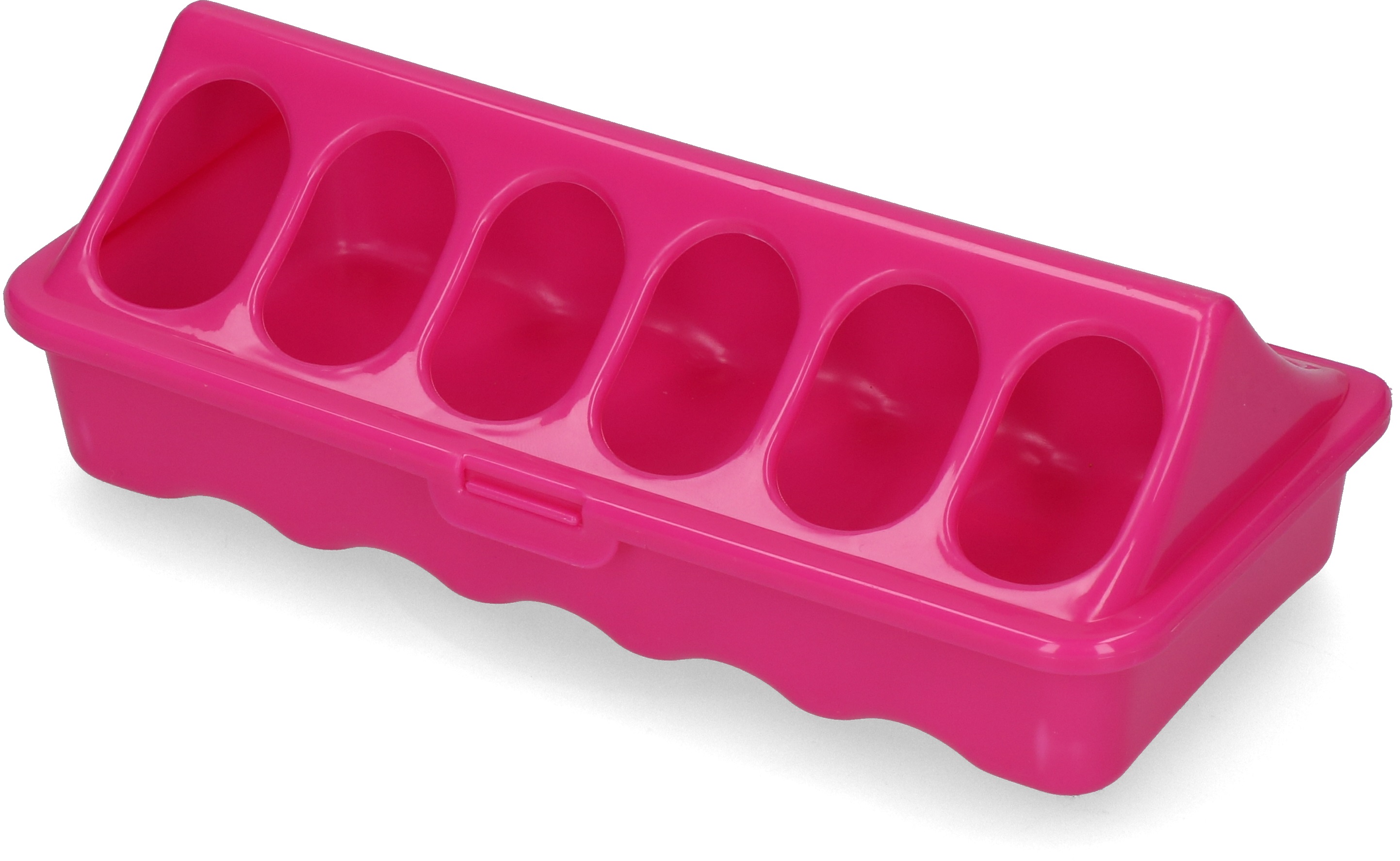 Kestävästä materiaalista valmistettu ruoka-astia linnuille. Kaksi eri väriä, 12 paikkaa.