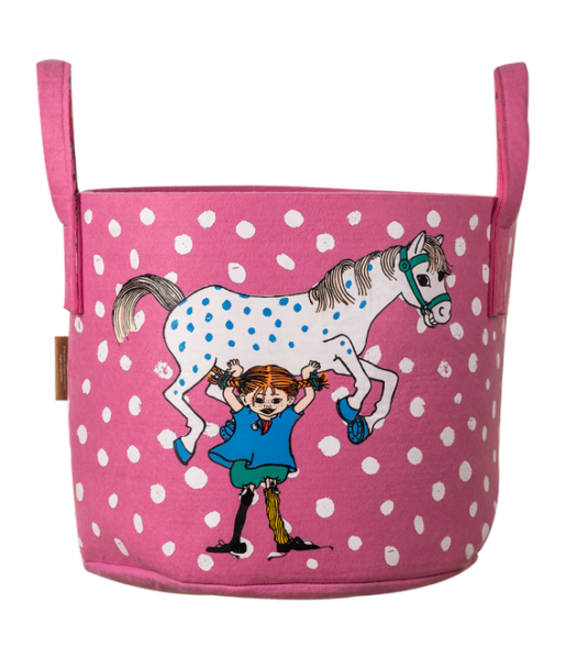 Tuo iloa sisustukseen Peppi ja hevonen säilytyskorilla! R-PET-kierrätysmuovista valmistettu säilytyskori on monipuolinen ja käytännöllinen sisustustuote, jonka huopamainen materiaali kestää kovaakin käyttöä.