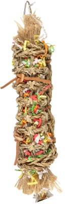 Hauska kiipeilylelu lemmikkilinnuille. Vahvasta paperipunoksesta tehdyn lelun sisällä on paperisuikaleita ja juuttinarua, joita lintusi saa nyppiä ja silputa. Vahvikkeena paperipunoksessa on sidottuna nahkanauhoja reunoihin. Telineessä roikkuu kilikello, ja yläkulmassa on kiinni kätevä hakanen, jolla lelun saa kiinni esimerkiksi häkin seinämään tai oksaan.