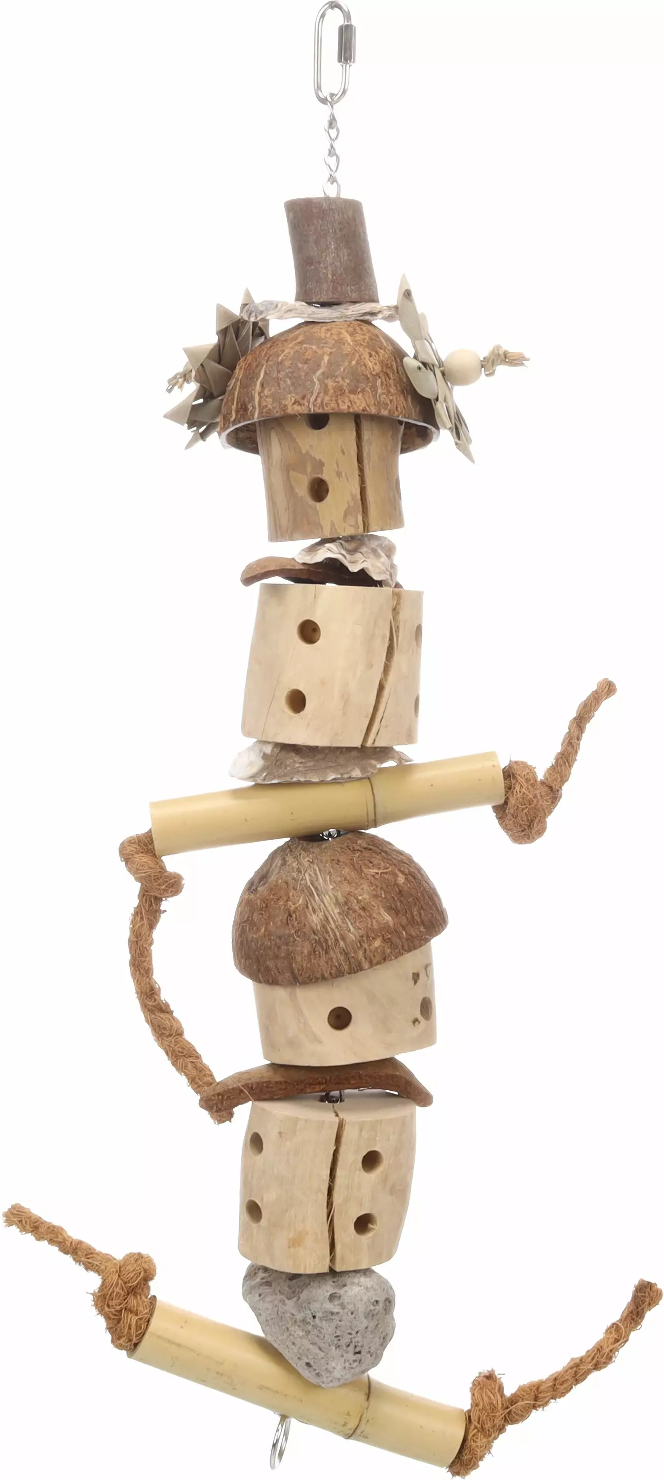 Hauska ja monipuolinen linnunlelu ripustettavaksi. Paljon erilaisia pintoja ja luonnonmateriaaleja lintusi tutkittavaksi.