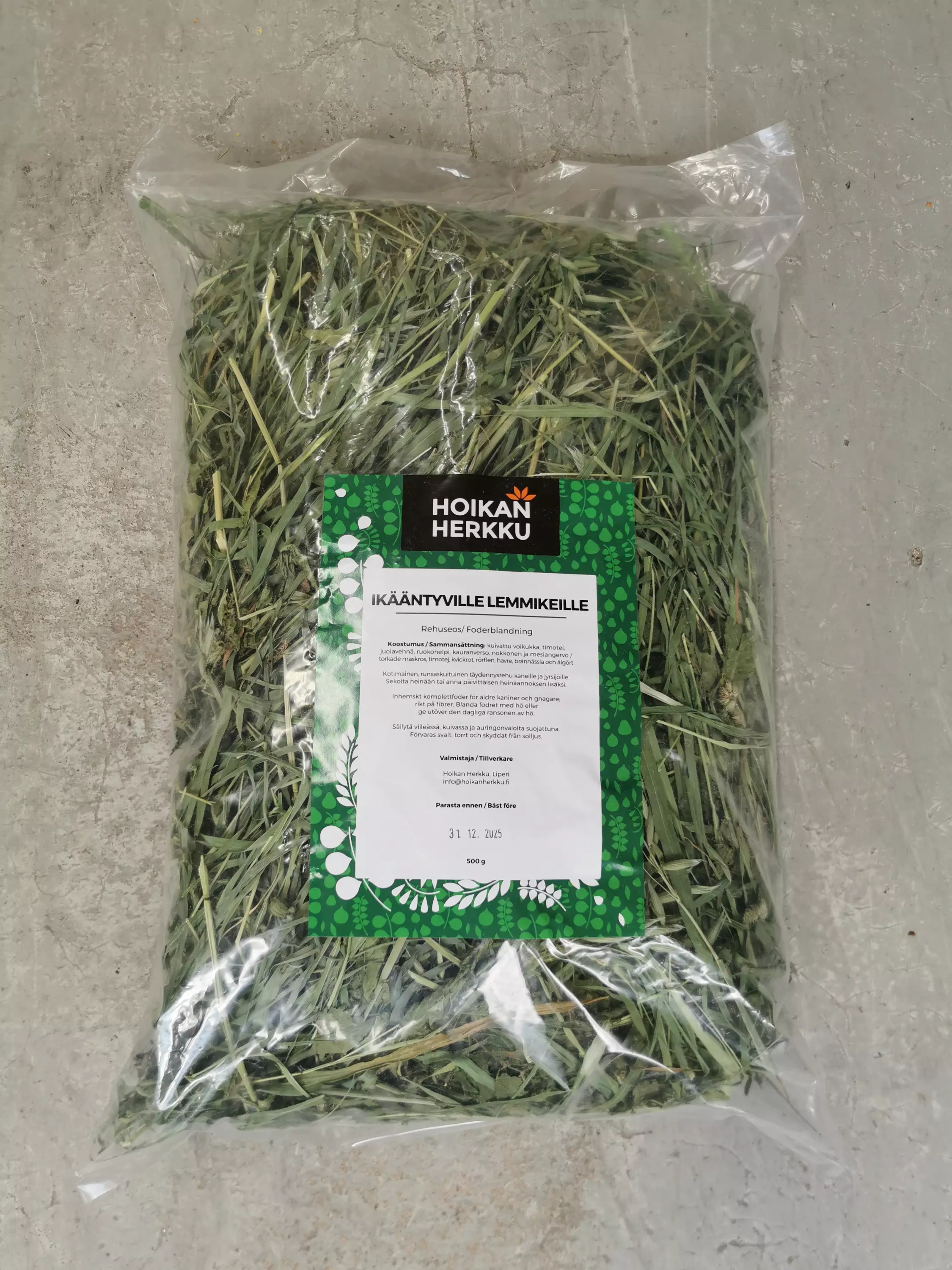 Kotimainen, runsaskuituinen täydennysrehu kaneille ja jyrsijöille. Sekoita heinään tai anna päivittäisen heinäannoksen lisäksi. Säilytä viileässä, kuivassa ja auringonvalolta suojattuna.