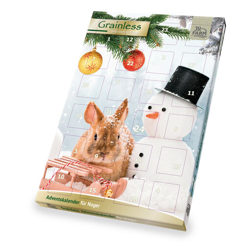 JR Grainless Advent Calendar What could be more exciting than the anticipation of Christmas and healthy feasting. And so that also your small animals can participate in it, you can order the delicious Christmas JR Grain less Advent Calendar.without any grain for a daily, healthy snack during Advent. Filled exclusively with natural Grainless Snacks, it is not only the perfect supplement for a cereal-free diet, but also ideal for Degus and chinchillas. Now there is also for small animals every day a little bit of Christmas. With a special surprise for Christmas Day!