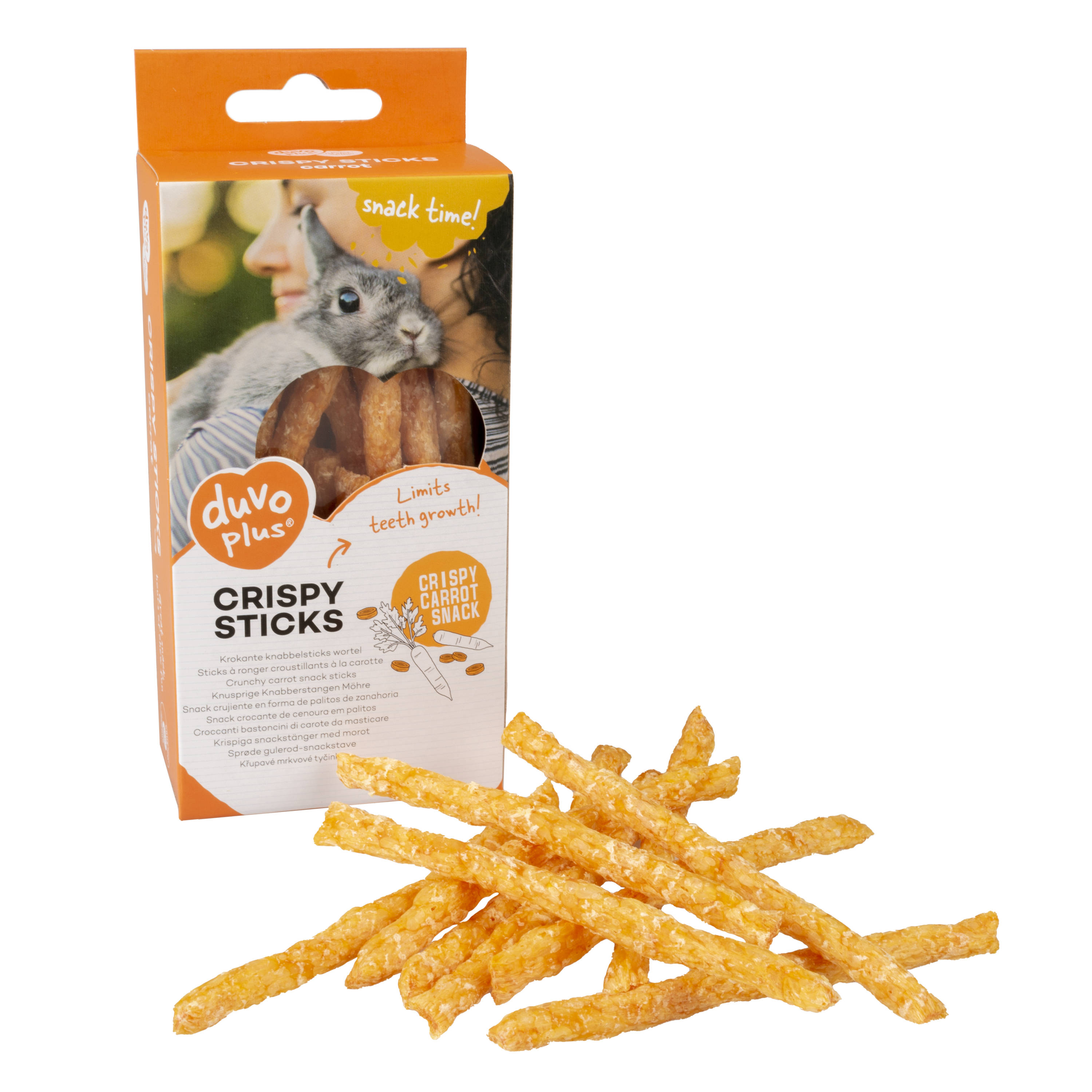 Välipala aika! Nämä maukkaat Duvo+-tikut ilahduttavat varmasti pikku jyrsijöitä. Porkkanaiset tikut ovat täydellisiä lisäherkkuna pienille jyrsijöille. Ne auttavat kuluttamaan hampaita luonnollisesti ja estävät ikävystymistä.
