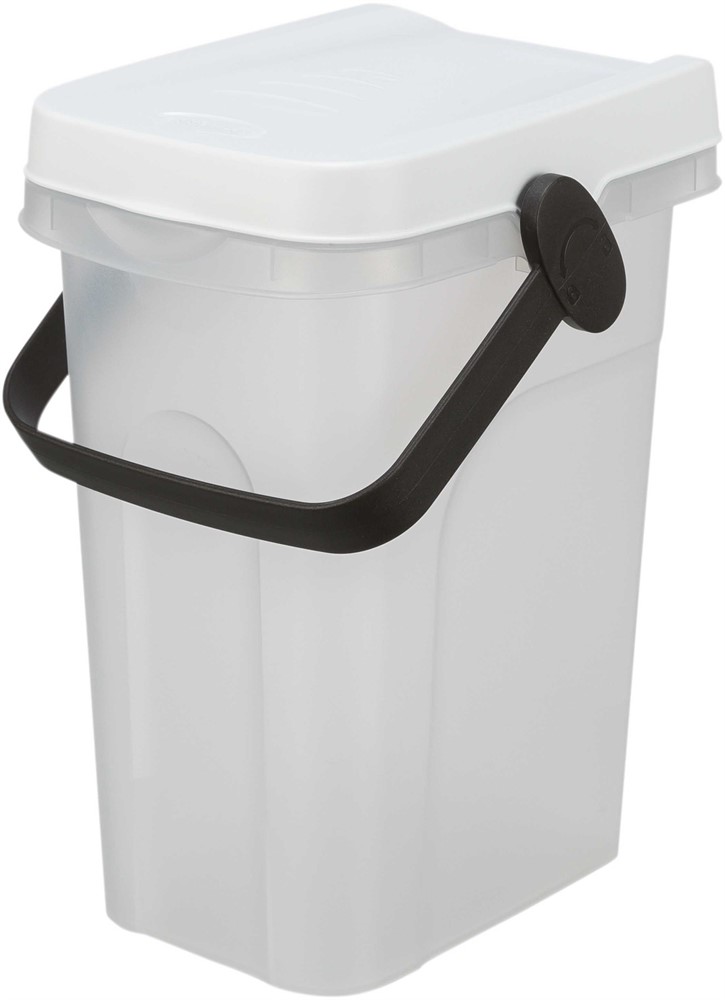 Muovinen ja ilmatiivis, läpinäkyvä säiliö esimerkiksi ruoalle, puruille. Kansi suljetaan kahvan avulla.