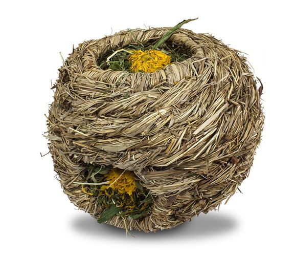 Pallo / Pesä on ihanteellinen paikka leikkimiseen, piiloutumiseen ja nukkumiseen. Pallo on täynnä aromaattista heinää, voikukkaa ja kehäkukan kukkia. - Tehty täysin luonnollisesta materiaalista -