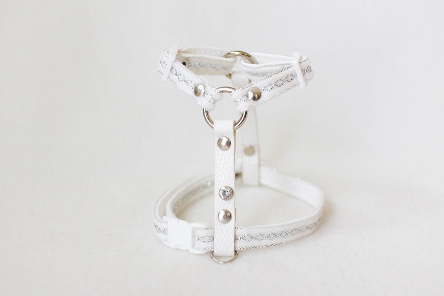 Kotimaista käsityötä. Pieni Y-valjas, joka on tarkoitettu noin 1-2kg lemmikille.