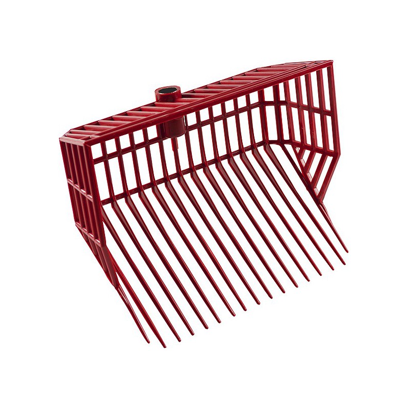 Suuri pitoalue vähentää lapioimista. Suuremmalla tilavuudella on nopea siivota lannat kuivikkeesta.